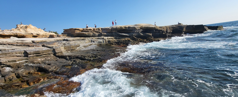 펼쳐진 평평한 암석들이 쉼없이 철석철석 치는 파도와 어우러져 장관을 이뤘다.