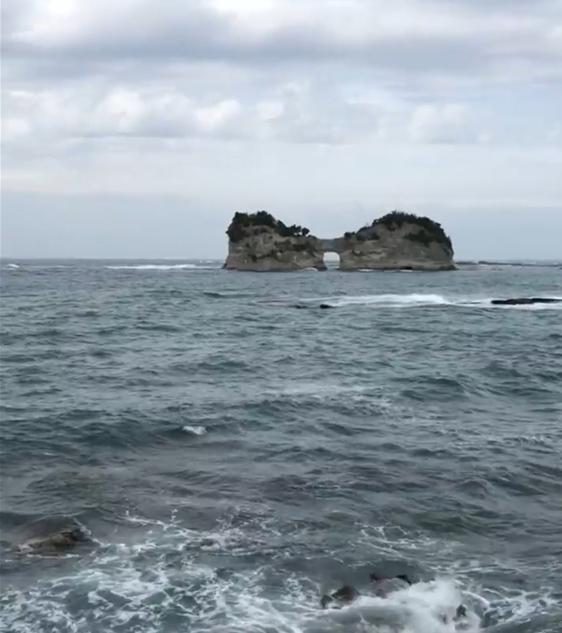 그리고 엔게츠도, 특이한 모양의 구멍까지 신기방기, 석양이 질 때면 붉은 해를 그 구멍에 넣어 사진에 포착하려는 사람들이 많다.