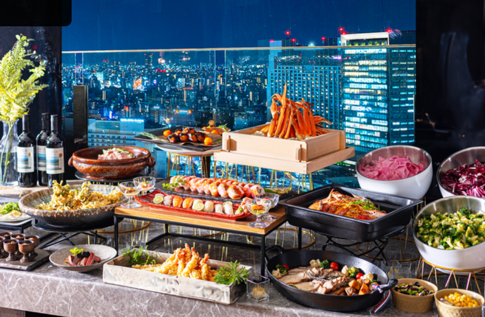 디너만은 6,800엔이고, **프리미엄 프리 드링크 플랜(9,000엔, 세금 포함)**을 선택하면 생맥주, 위스키, 와인, 일본 사케 등 30종 이상의 음료를 무제한으로 즐길 수 있다. 이 플랜은 뷔페 요리와 함께 다양한 음료를 즐기고 싶은 이들에게 완벽한 선택이 될 것이다.