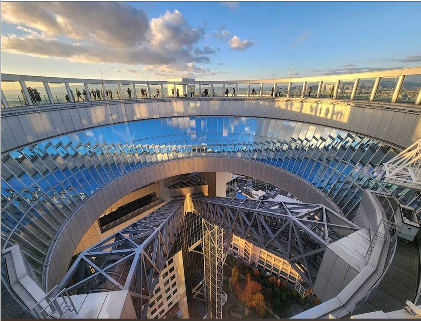 우메다 스카이빌딩의 공중정원 전망대는 오사카의 야경을 감상할 수 있는 최고의 장소 중 하나입니다.
