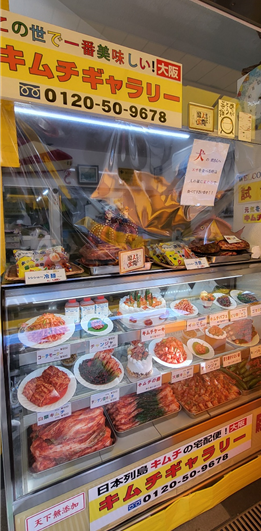 🇰🇷 츠루하시 시장은 일본에서 가장 유명한 한국식 시장 중 하나입니다. 김밥, 떡볶이, 순대, 부침개, 젓갈류, 간장게장까지 전통 한식 반찬들이 가득! 특히 한국식 김치 가게가 많아, 일본인들도 이곳에 김치를 사러오는 경우가 많습니다.
